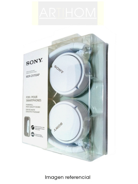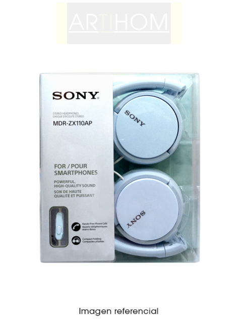 Auricular de diseño plegable modelo MDR-ZX110AP de la marca Sony, viene equipado con el sistema de manos libres para llamadas (handsfree), los controladores de 30 mm ofrecen un sonido de calidad y sus almohadillas acolchadas le darán una mejor comodidad al momento de usarlo.