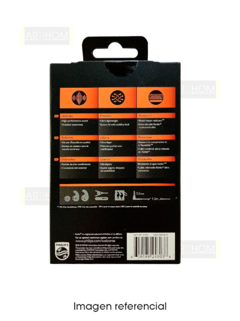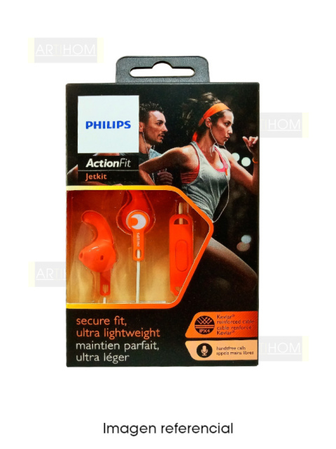 Audífono deportivo modelo SHQ1305OR de la marca Philips.