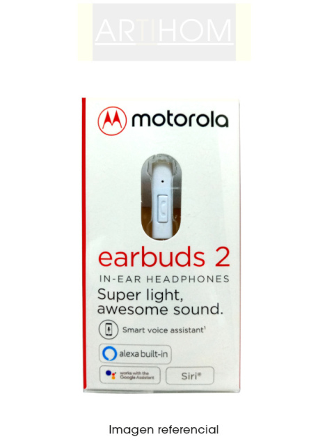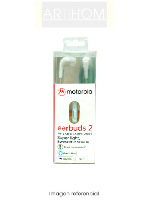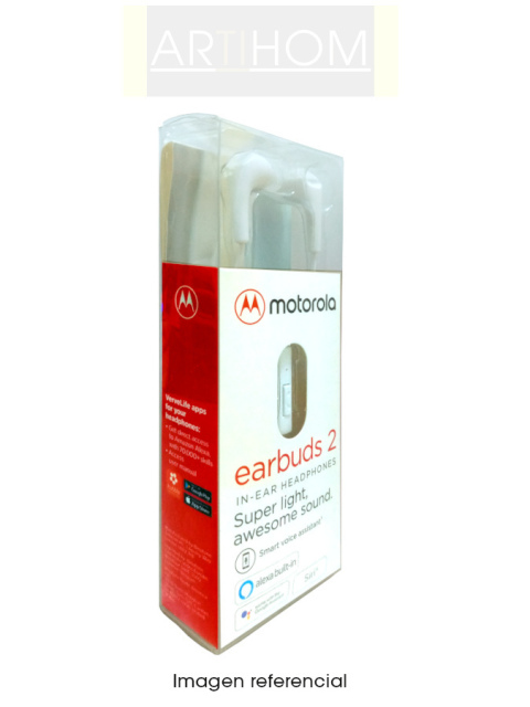 Audífono intrauditivo earbuds 2 de la marca Motorola, incluye acoples de silicona en tres medidas diferentes (pequeño, mediano y grande) además de un diseño super liviano con la función de manos libres para contestar llamadas. Cuenta con un cable de 1.2 metros de longitud.